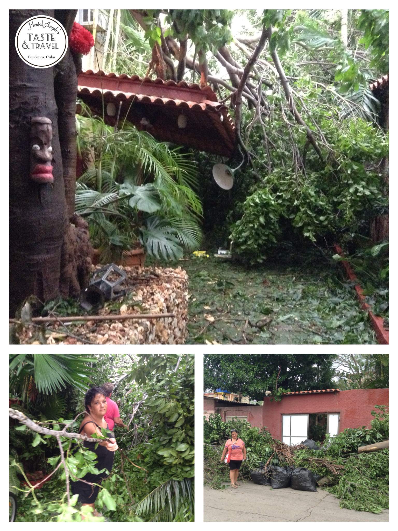 With the break of dawn Steve, Angelo and I were down below to survey the damage the tree was so thick it was almost jungle like.....the boys found me a path under the table up against the wall to go for help. The street was deep in water and debris. I made my way down to My Buddy Framils house to ask for garden shears, snipers or anything of that sort. He laughed, grabbed a machete and said let's go. As we walk back to Angelos the town of Cardenas is waking, everyone is outside looking up to their roofs to make sure they survived....the majority of them did. We arrive back to Angelos and trusty Framil hacks us a path into our casa, surprisingly the machete works well. A few short hours later our amigos Humberto and Gilberto appear with one of the few chainsaws on the island. They make short work of the gran tree. It is now no more than a mountain of debris blocking the roadway. As everyone clears their homes of falling trees the roads grow smaller an smaller, how will they ever clean this mess. But you know what the storm has